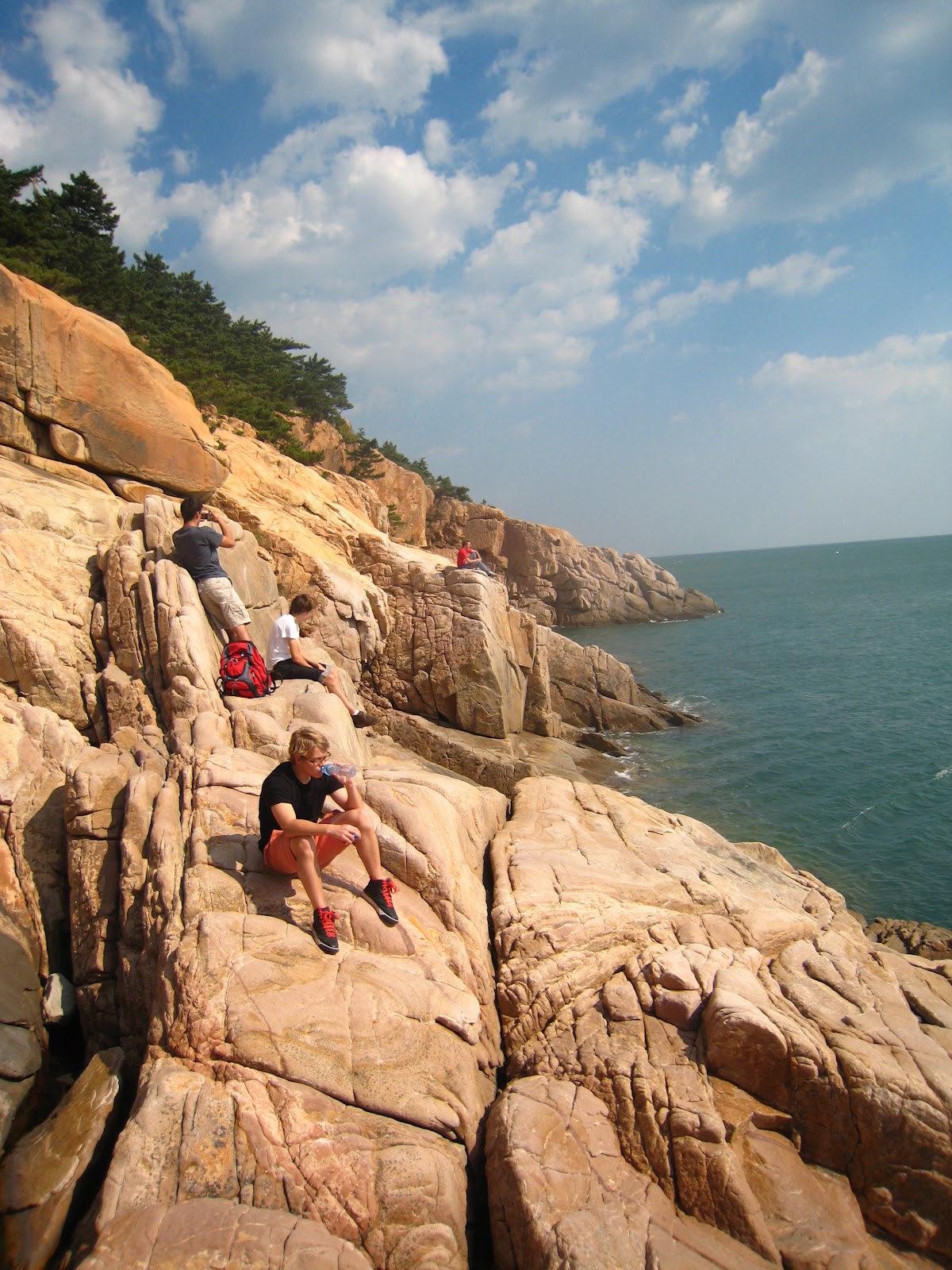 took us down onto some cliffs above the water. We climbed the cliffs down to the water and sat there for a bit, which was very nice, and the views were spectacular. We